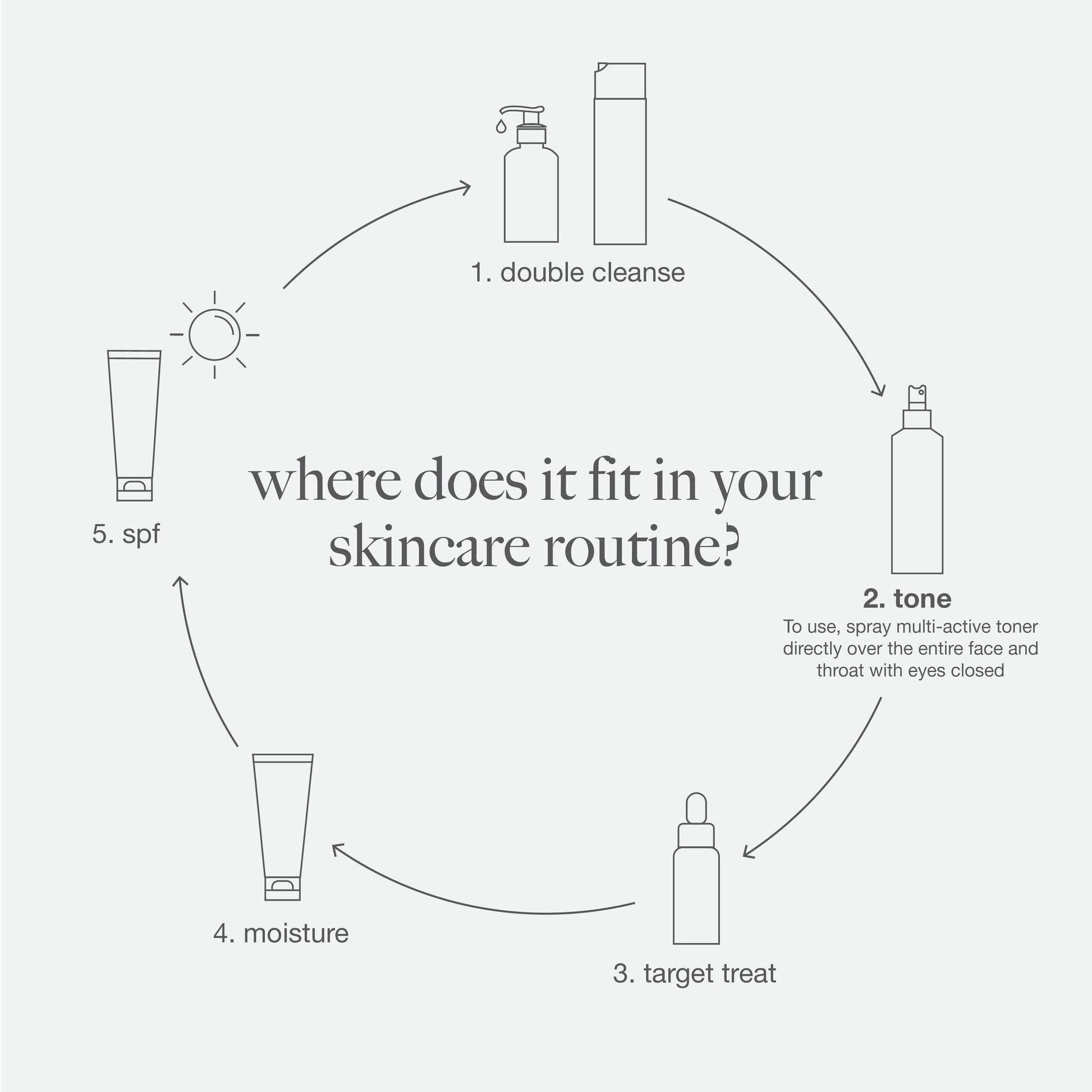 After performing the Dermalogica Double Cleanse, spray directly over the entire face and throat with eyes closed. Follow with prescribed Dermalogica Moisturizer.